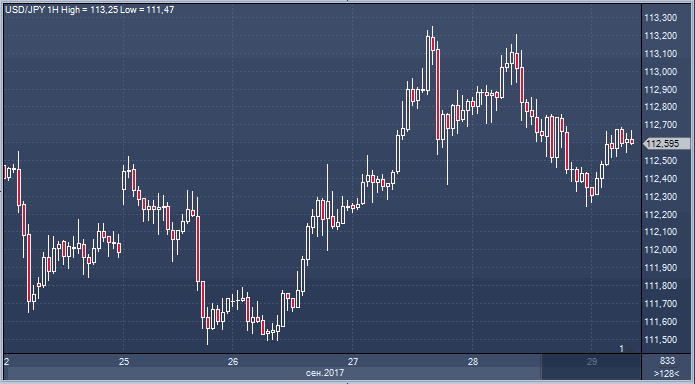 Японская иена падает против всех основных валют, включая доллар. Виноват Банк Японии со своей осторожной риторикой, обнаруженной в протоколе сентябрьского заседания Совета управляющих. Чиновники активно обсуждали достижимость целевого уровня инфляции и необходимость дополнительных стимулов перед очередным раундом повышения налога с продаж, запланированного на октябрь 2019 года. Отчет явно подпортил настроение инвесторам, которые даже не обратили внимание на то, что вышедший двадцатью минутами ранее отчет по инфляции показал самый быстрый рост цен в стране за последние два с половиной года. В августе CPI увеличился на 0.7% в годовом исчислении против ожидаемых 0.6%. Базовый CPI вышел на уровне прогноза — 0.2%. На этом фоне доллар/иена отыграл больше половины вчерашнего падения и сейчас активно движется к сопротивлению в области 112.80. Будет ли оно пройдено, или пара вернется к поддержке в зоне 112.30/20 — зависит от настроений по доллару сегодня в течение дня.