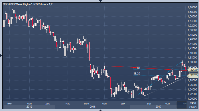 Стабилизация выше 1.3260/50 несколько ободрила быков по фунту, но вернуться выше 1.3300 не удалось, и, в то время как британская валюта не оставляет упорных попыток сформировать основание, они выглядят все менее убедительными. Техническая картина претерпела негативные изменения, и прорыв ниже 1.3267/30 (23.6% от роста с января, линия сопротивления с сентября 2016, максимумы августа 2017 и бывшая линия сопротивления с сентября 2016) будет сигналом о смещении фокуса к 1.3150, а потенциально и в область 1.31/1.29.