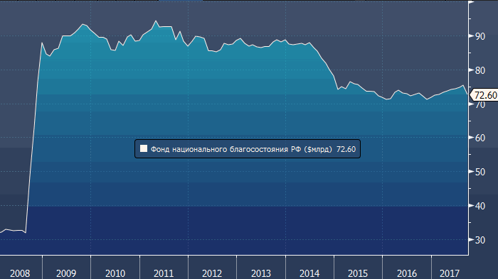 Как следует из сообщения российского Минфина, в сентябре было зафиксировано первое с прошлого ноября сокращение Фонда национального благосостояния (с $75.36 млрд до $72.57 млрд). В отчете ведомства сообщается, что из фонда были иъяты Е2.39 млрд и конвертированы в 164.18 млрд рублей, которые пошли на покрытие дефицита Пенсионного фонда РФ.
