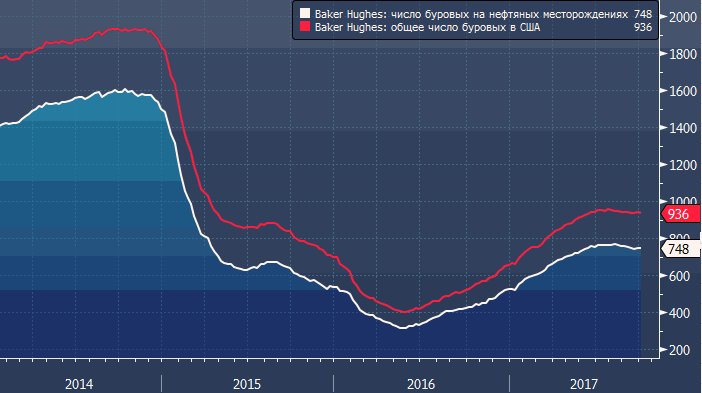 - общее число буровых установок -4 до 936. Снижение зафиксировано в Техасе (-3 до 448), Вайоминге (-2 до 23), Пенсильвании (-2 до 31) и Луизиане (-1 до 66). Рост числа буровых был зафиксирован в Оклахоме (+3 до 127) и Колорадо (+1 до 34)