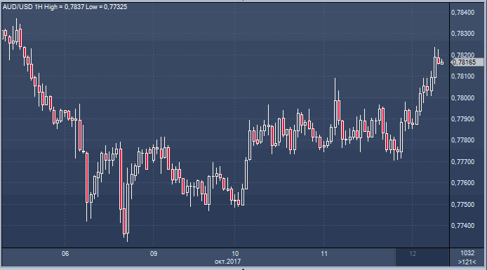 Австралийский доллар с утра уверенно растет на фоне неожиданного роста инфляционных ожиданий. Согласно данным, опубликованным Мельбурнским институтом прикладной экономики и социальных исследований, потребители и бизнес настраиваются на то, что в ближайшие 12 месяцев инфляция достигнет 4.3%, при этом что в сентябре данный показатель не превышал 3.8%. Мнение общественности в этом плане радикально отличается от позиции Резервного банка Австралии, который на последнем заседании по кредитно-денежной политике заявил о том, что высокий валютный курс будет сдерживать рост цен и оказывать нисходящее давление на инфляцию. Кто из них прав, мы узнаем не ранее 25 октября, когда выйдет отчет по индексу CPI за третий квартал. А пока аусси/доллар легким движением пронзил сопротивление 0.7800 и зафиксировал максимум азиатской сессии на уровне 0.7823, где его уже поджидали продавцы и желающие зафиксировать прибыль по краткосрочным длинным позициям. Для развития восходящей динамики австралийцу сейчас жизненно необходимо закрепиться выше 0.7800 сегодня по итогам дня и как можно быстрее преодолеть следующее сопротивление в области 0.7850, тогда можно будет говорить о формировании локального дна.