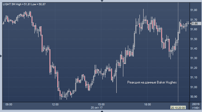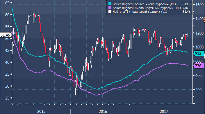 Нефть сумела оправиться от распродажи в первой половине дня, и, в то время как очередная неудачная попытка пробиться выше $51.80 дала повод для коррекции к $51.30, публикация данных Baker Hughes по буровым установкам в США обеспечила прилив оптимизма. Ожидать развития активного наступления в преддверии выходных не стоит, но новости о снижении активности в сланцевой отрасли США определенно позитивны для быков, опасающихся, что с ростом цен сланцевики начнут агрессивно наращивать добычу.