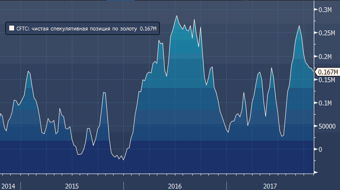 Согласно последним данным американской Комиссии по торговле товарными фьючерсами (CFTC), за неделю до 31 октября крупные спекулянты сократили объем чистой длинной позиции во фьючерсах и опционах на золото на 6 508 контрактов до 166 535 контрактов (12-недельный минимум).