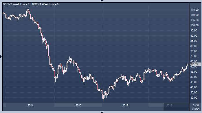 Brent подошел к ключевому уровню, прорыв которого в 2014 положил начало медвежьего рынка