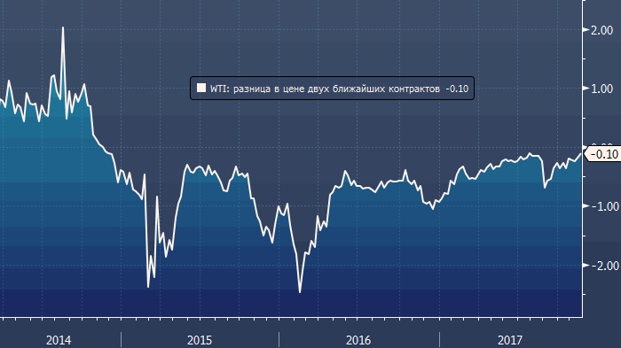 Дисконт январских фьючерсов на WTI к аналогичным фьючерсам на Brent сократился вчера на $0.21 до $5.80, что является минимальным значением с 23 октября. В то же время, контанго между двумя ближайшими фьючерсами на WTI увеличилось на $0.03 до $0.19, хотя внутри дня оно сокращалось до $0.10 (ProFinance.ru: минимальное значение с 1 августа. Напомним, что главной декларируемой целью реализации соглашения ОПЕК+ является создание устойчивой бэквордации фьючерсов на нефть, при которой ее становится невыгодно хранить).