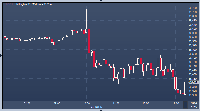 - 69.4934 рубля за 1 евро