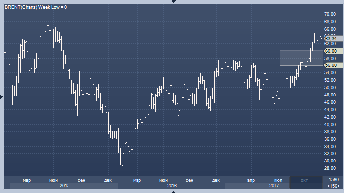 - новый прогноз по средней цене Brent и WTI в 2018 году составляет $56 (+$2 к предыдущего прогнозу и $53 (аналогично) соответственно;