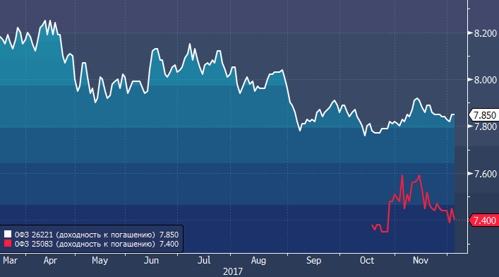 | 15/11/17 | ОФЗ-ПД 25083 | 10.0 | 10.0 | 29.5 | 2.95 | 7.60% |