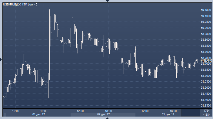 По итогам торгов во вторник 5 декабря курс доллара к рублю снизился на 6 копеек до 58.73, а курс евро к рублю - на 23 копейки до 69.43 (прим. ProFinance.ru: по состоянию на 23:50 МСК).