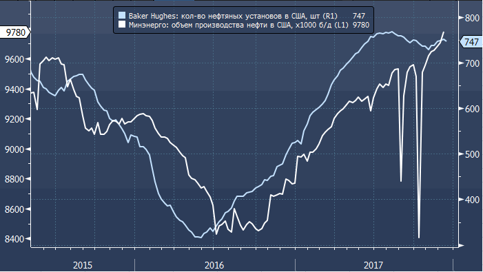 Цены на нефть не показали заметной реакции на эти цифры, что традиционно для пятницы, когда ликвидность перед выходными истощается на фоне снижения торговой активности. Однако в понедельник рынок учтет, что пока именно бурных темпов роста американские бурильщики не демонстрируют. Тем не менее, статистика по объемам производства говорит сама за себя - этот показатель растет крайне заметно и достигает рекордных исторических значений.