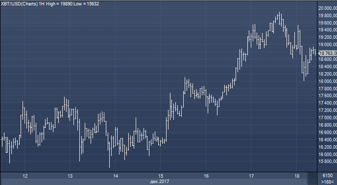 В воскресенье биткоин протестировал очередную историческую отметку в $20 000, после чего скорректировался на 10% до $18 000 и теперь торгуется около $19 000. Его общая капитализация в настоящий момент превышает $300 млрд, что примерно аналогично стоимости General Electric + Cisco Systems. Общая капитализация рынка криптовалют вплотную подобралась к $600 млрд, что сопоставимо со стоимостью Amazon.