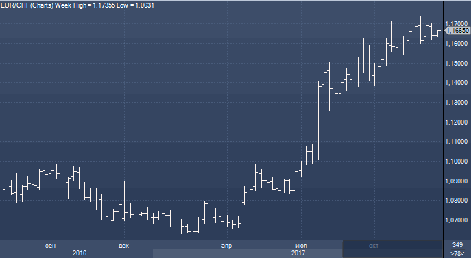 Прогнозы по темпам роста инфляции и ВВП Швейцарии улучшаются довольно медленно, поэтому ШНБ придется и в следующем году проводить чрезвычайно мягкую монетарную политику, полагают в ING. «С одной стороны, текущие прогнозы по инфляцию не предполагают ужесточения монетарной политики ШНБ раньше конца 2019 года», - пишут эксперты банка. «С другой стороны, улучшение экономических перспектив и некоторое инфляционное давление должно устранить риски дальнейшего расширения монетарного стимулирования. Поэтому, по нашим прогнозам, ШНБ продолжит проводить политику отрицательных ставок до конца 2019 года, но воздержится от валютных интервенций, если только не произойдет чего-то экстраординарного».