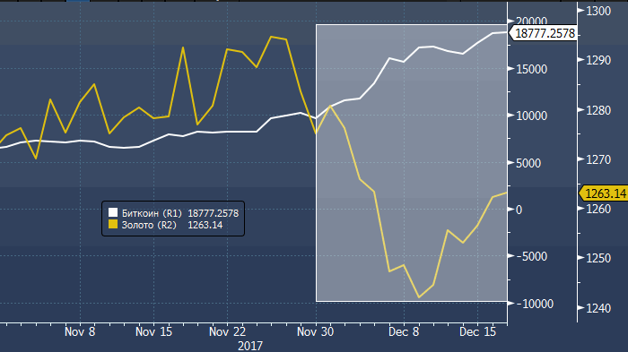 В ноябре наблюдалась определенная корреляция между динамикой биткоина и золота, однако в начале декабря их пути кардинально разошлись. По данным CFTC, в этот период наблюдалось резкое снижение объема чистого спекулятивного лонга в драгметаллах (чистая позиция в серебре на прошлой неделе даже стала «короткой»).