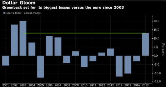 Доллар готовится закрыть год с крупнейшими с 2003 года потерями