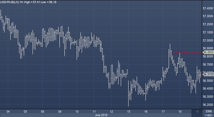 В последнее время рубль дорожал против доллара вместе с остальными валютами развивающихся стран. Вчера Игорь Дмитриев сообщил, что бюджетное правило сглаживает волатильность российской валюты, а ее курс формируется рынком. По его словам, Банк России не планирует резкого смягчения монетарной политики, что должно оказывать рублю некоторую поддержку и в дальнейшем. Краткосрочный ориентир по доллар/рублю — 56-57. Источник: ProFinance.Ru - Новости рынка Форекс