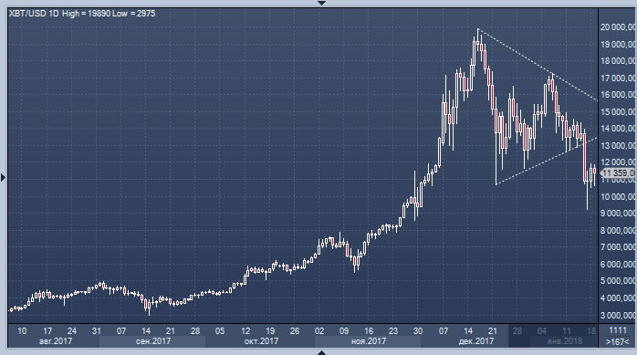 Биткоин завершает пятницу на минорной ноте с результатом в -3.6%, так и не сумев вернуться выше $12 000. Ряд обозревателей усматривает в снижении коррекцию и возможность для покупки, однако новостной фон пока не благоприятствует быкам, и в случае, если попытки роста в ближайшее время останутся вялыми, от биткоина вполне можно будет ожидать дальнейшего падения.