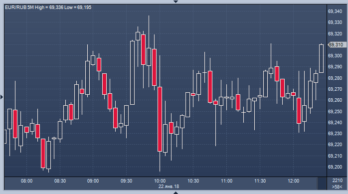 - 69.2650 рубля за 1 евро