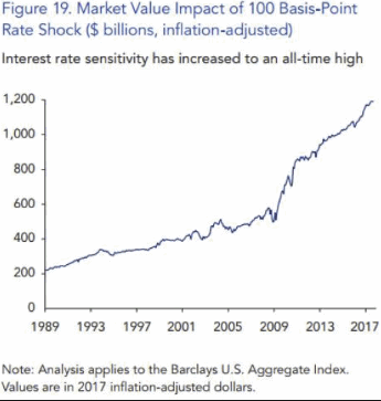Рост ставки на 100 базисных пункта будет приведет к падению стоимости активов инвесторов на рынке облигаций в объеме от $1.2 до $2.4 трлн.