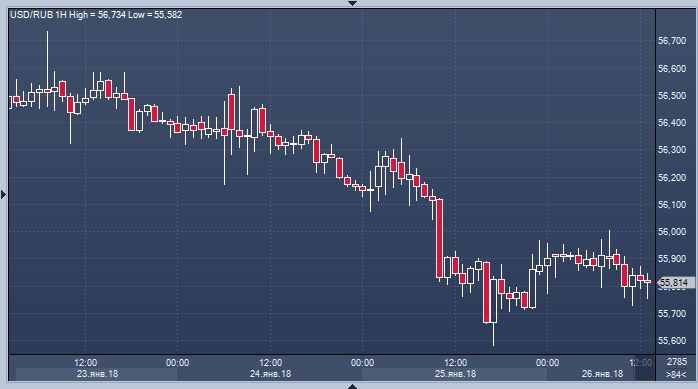 Компании почти выплатили налоги, теперь все ждут доклада по санкциям в США, поэтому игроки, скорее всего, проявят осторожность и даже могут частично зафиксировать прибыль от роста рубля перед выходными, пишут аналитики Sberbank CIB Том Левинсон и Юрий Попов. После пресс-конференции главы ЕЦБ Марио Драги возобновилось масштабное ослабление доллара, что позволило паре доллар/рубль пробить минимум 2017 года (55.7 руб.). Однако затем курс вернулся к уровню 55.9 руб., так как доллар укрепился, а нефтяные котировки снизились с уровня $71/барр.