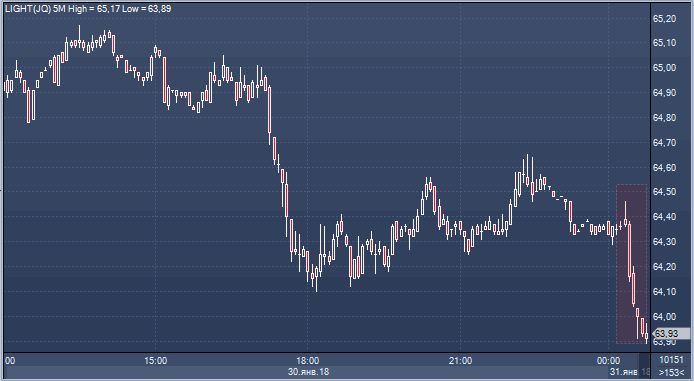 Цены на нефть отреагировали падением на публикации статистики Американского института нефти (API), отразившую изменения запасов сырой нефти за отчетную неделю до 26 января на куда большую величину, чем прогнозные оценки экспертов. На разачарованиях котировки мартовских фьючерсов на WTI пробили минимумы вторника и опустились ниже 64 долларов за баррель.
