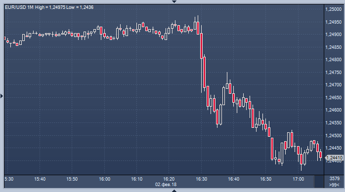 Доллар укрепляется против ведущих мировых валют на фоне неожиданного роста зарплат в США — средняя почасовая зарплата выросла намного сильнее прогнозов, а результат предыдущего месяца был пересмотрен вверх; 10-летние долговые бумаги минфина США падают, а их доходность выросла до 2.8%. USD/JPY пробивает 110.00, впервые за неделю, поднявшись до 110.36, максимума с 24 января. Прорыв далее может привести цены до 110.50. EUR/USD падает ниже области бидов на 1.2475 и 200-месячной MA на 1.2453, поддержка тренда ожидается на 1.2415. Безработица в США в январе осталась в январе на уровне декабря в 4.1%, а вот занятость в несельскохозяйственных отраслях экономики увеличилось на 200 тысяч, хотя эксперты ожидали рост на 180 тысяч. Декабрьский показатель был пересмотрен в сторону увеличения до 160 тысяч с заявленных ранее 148 тысяч.