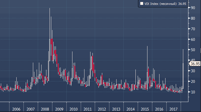 Кадмор также отмечает, что всплеск волатильности (индекс VIX взлетел к максимальным уровням с 2015 года) будет иметь длительный негативный эффект на VaR (оценка риска), что предполагает устойчивое снижение потенциального уровня левереджа банков и хедж-фондов на протяжении этого года. Все это происходит на фоне данных, свидетельствующих о том, что в январе в акции наблюдался рекордный приток средств, а показатели оптимизма быков были крайне высоки, и теперь, когда акции рухнули, у инвесторов куда меньше средств, чтобы покупать на спаде, чем пару недель назад.