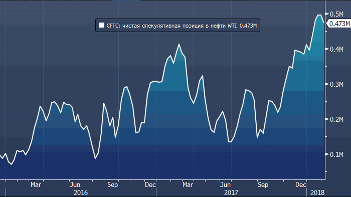 Как следует из последних данных американской Комиссии по торговле товарными фьючерсами (CFTC), за неделю до 6 февраля крупные спекулянты сократили объем чистой длинной позиции во фьючерсах и опционах на нефть WTI на 23 183 контракта до 472 792 контрактов (4-недельный минимум).