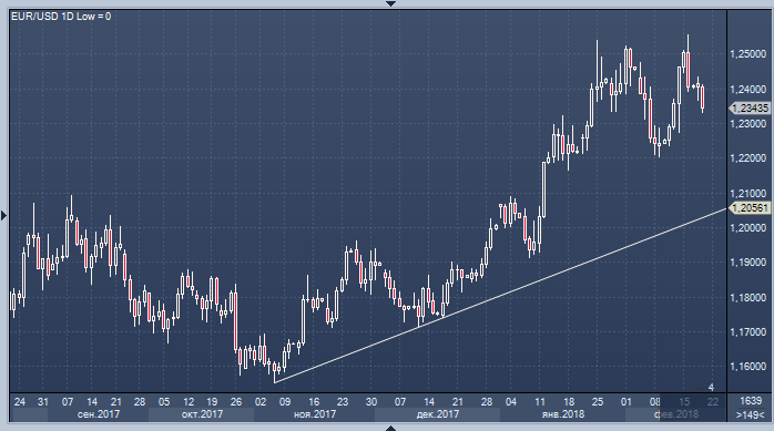 Евро оказывает давление на еще одну ключевую точку, поскольку область $1.2340 соответствует уровню коррекции Фибоначчи от отскока с $1.2200 (9 февраля) до $1.2555 до уик-энда, указывает исследовательская группа BBH. «Ниже, поддержка наблюдается около $1.2285, далее ничего существенного нет до $1.22. Прорыв ниже $1.2200 станет сигналом, что пик, установленный ранее евро, имеет статус более важного максимума, чем считается сейчас. Этот прорыв будет предупреждать о вероятном падении в сторону $1.18 (по целям «двойной вершины»). Опцион в размере 551 млн евро имеет цену исполнения $1.2365 и истекает сегодня», - сообщили специалисты.