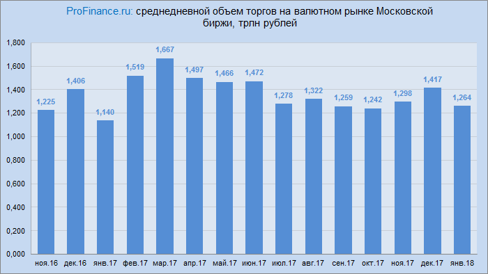Объем торгов в валютной секции Московский биржи в четверг 1 марта составил 1.459 трлн. рублей ($25.889 млрд.).