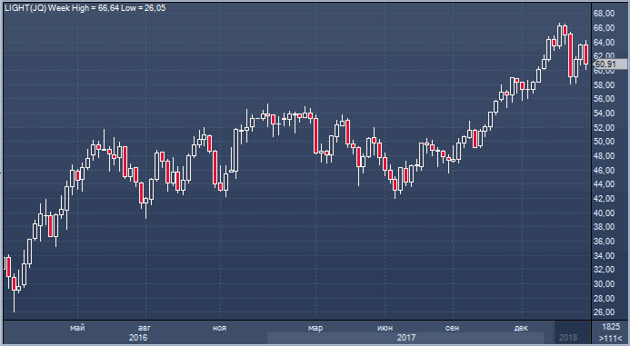 Нефть WTI впервые за три недели завершает неделю падением на фоне бума сланцевой нефти и обещания президента США Дональда Трампа ввести пошлины на импорт стали и алюминия: инвесторы опасаются, что эта мера может вызвать глобальную торговую войну.