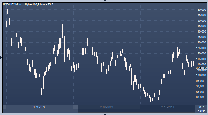 «В прошлые разы, когда торговая политика становилась главной повесткой дня администрации [Белого Дома] доллар существенно слабел, наиболее ярким примером может послужить торговые споры Бентсена/Клинтона с Японией в начале 90-х, когда USDJPY рухнул к 80», — отмечает Джордж Саравелос, один из руководителей отдела глобальных валютных исследований Deutsche Bank.