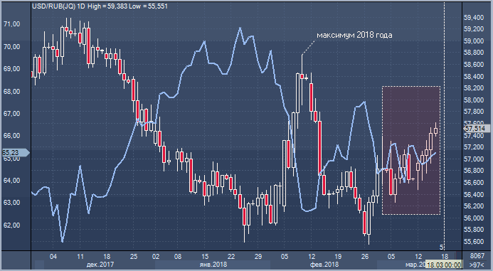 Курс доллара США с 26 февраля подорожал на 2 рубля. Еще рубль и курс протестирует область максимумов 2018 года. Если сопоставить с начала марта динамику курса USDRUB и цен на нефть марки Brent, можно сделать вывод: нефтяные котировки не являются драйвером слабости российской валюты перед президентскими выборами. А вот геополитическая напряженность, которая резко возникла на финальном этапе «президентской гонки», давит на курс рубля. Точнее, именно «гонки» не видно. Возможно, это и является причиной недовольства зарубежных держав.