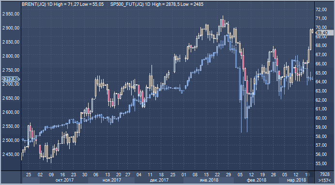В январе нефть достигла годовых максимумов: Brent 71.27 за баррель, WTI – 66.64 за баррель. Затем фондовые рынки продемонстрировали самое масштабное февральское падение за 50 лет. Это оказало давление на нефтяные котировки. Сейчас нефть очень близка к повторному тестированию своих годовых максимумов.
