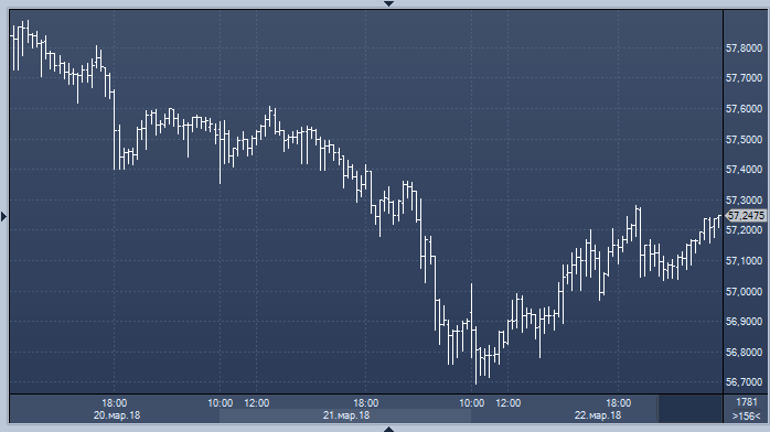 Российская валюта находилась под давлением весь день, причиной чему послужил ряд факторов: снижение цен на нефть, общее падение аппетита к риску и продолжающийся конфликт с Великобританией, призывающей союзников выслать российских дипломатов. Поддержку рублю оказывает продажа валютной выручки экспортерами, которым на следующей неделе предстоят самые большие в этом году налоговые выплаты, но явное снижение оптимизма после вчерашнего решения ФРС пока перевешивает. В пятницу Банк России проведет заседание, посвященное вопросам денежно-кредитной политики, по результатам которого, как ожидается, ключевая ставка будет снижена на 0.25% до 7.25%.