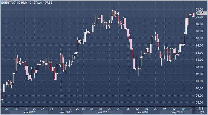 Котировки нефтяных фьючерсов на Brent и WTI максимально приблизились к своим январским годовым максимумам. Устойчивый рост наблюдается с 14 марта. Нефть отреагировала на перестановки, который сделал президент США Дональд Трамп: