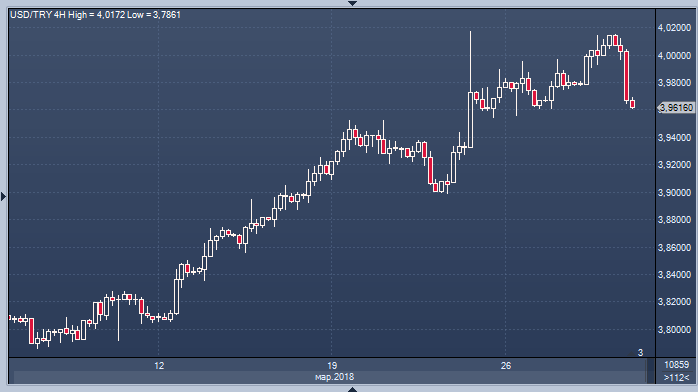 Рост лиры также сопровождается повышением цен на местные облигации, при этом доходность 10-летних долговых бумаг падает на 25 базисных пунктов. Доллар/лира (USD/TRY) падает на 0.9% до минимума сессии 3.9756 после того, как ранее коснулся максимума 4.0160. Последний лишь немногим не дотянул до максимума пятницы 4.0361.