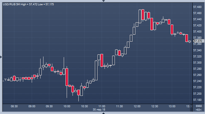 Рубль в четверг двигался в рамках общего тренда, укрепившись на 0.8%. Подросшая нефть стала дополнительным фактором поддержки. При этом объемы торгов рублем на Московской бирже оказались довольно высокими, порядка $4.9 млрд., несмотря на завершение налогового периода. Экспортеры продолжали продавать весомые объемы иностранной валюты по привлекательному курсу, вероятно, для покрытия операционных расходов. В пятницу торги рублем будут спокойными, поскольку западные финансовые рынки закрыты на пасхальные каникулы. Тем не менее напряженность в международных отношениях может оказывать давление на российскую валюту, поскольку США озаботились реакцией на высылку американских дипломатов из России.