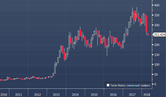Пессимизм среди инвесторов растет, и, как считает Джон Томпсон, глава Vilas Capital Management, это вполне закономерно. Он обращает внимание на то, что Tesla стоит в два раза больше, чем Ford, однако если последний в прошлом году продал 6 млн автомобилей и получил прибыль в $7.6 млрд, то компания Илона Маска смогла произвести лишь 100 тыс автомобилей и при этом получить убыток в $2 млрд. Источник: ProFinance.Ru - Новости рынка Форекс