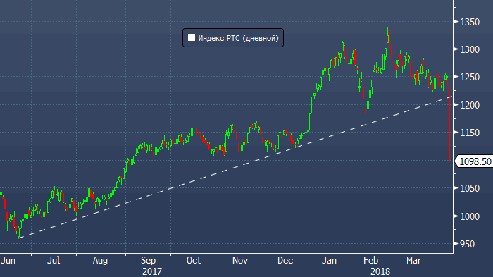 Черный понедельник для российских акций и рубля — РТС рухнул на 10%