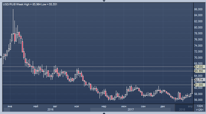 Эксперт ожидает, что «развитие событий на геополитической арене продолжит задавать вектор движениям курса рубля». Следующие ключевые технические уровни для USD/RUB расположены на 65.5 и 67. Закрытие недели выше ключевого уровня 61 (pivot) подтвердит бычий прорыв USD/RUB из бокового тренда, который существует с января прошлого года, рассказал эксперт.