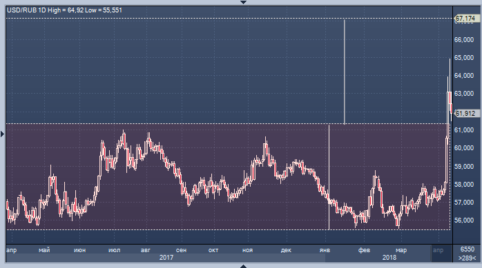 Рынок акций РФ и рубль растут в первый час торгов в четверг, отыгрывая «шаг назад» в воинствующей риторике американских властей. Курс доллара США опустился к рублю на 10:37 мск до 61.74 — при том, что вчера он превышал 65 рублей. Евро упал до 76.33, хотя вчера взбирался выше 80. Можно сказать, что таким ростом рубля рынок отмахнулся от эмоций и начал здраво, с холодным умом, анализировать ситуацию. А поскольку эта ситуация далека от разрешения, некоторые эксперты говорят, что текущие уровни могут рассматриваться как неплохая возможность продать рубль.