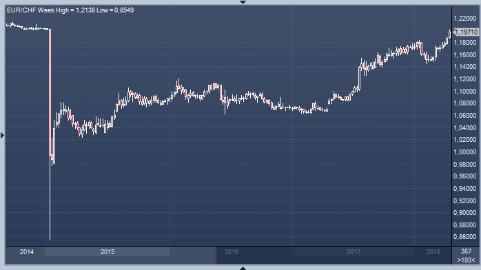 «Как только мы поднимемся выше 1.20, будет очень сложно говорить, куда мы пойдем дальше, — сказал он в телефонном интервью. — Швейцарская денежно-кредитная политика вряд ли изменится раньше изменения политики ЕЦБ, и поэтому нет никакого дифференциала процентных ставок. Динамика котировок будет задаваться улучшением или ухудшением настроений инвесторов, их отношением к риску».