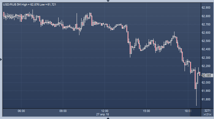 Курс доллара к рублю резко упал и обновил внутридневной минимум в районе 61.72 после публикации заявления на сайте EN+ Group. Компания подала в Управление по контролю за иностранными активами Казначейства США заявление на продление периода действия лицензии, которая позволяет американским гражданам вступать в определенные транзакции с ней. В EN+ в этом же заявлении сообщили, что Олег Дерипаска согласился на сокращение своей доли в компании до уровня ниже 50%, а также покинет ее совет директоров. Источник: ProFinance.Ru - Новости рынка Форекс