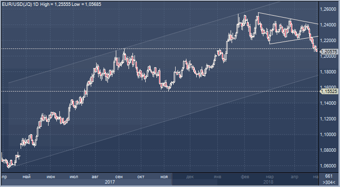 Курс евро по отношению к доллару потерял ряд важных технических уровней поддержки и опустился ниже максимумом сентября 2017 года.