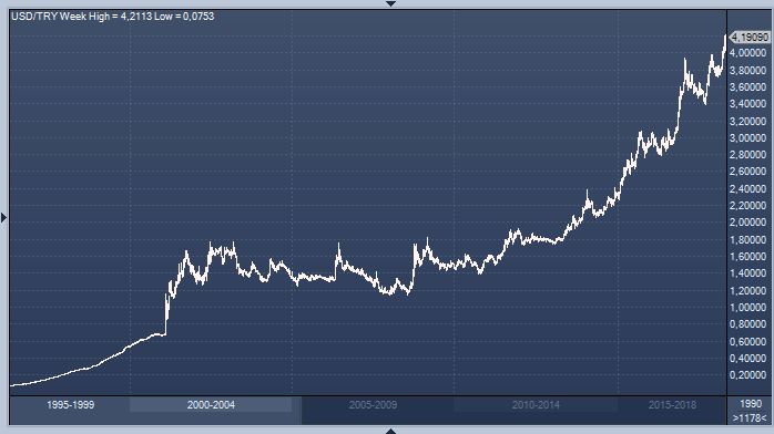 Лира торгуется со снижением на 0.6% до 4.2035 за доллар в 11:05 утра в Стамбуле. Ранее она достигала нового рекордного минимума на 4.2296. По отношению к евро турецкая нацваюта подешевела на 1.6%, до 5.0731 лиры. За последние два месяца курс лиры упал на 10% к бивалютной корзине (доллар и евро), сообщает агентство Bloomberg. С начала года лира дешевеет максимальными темпами среди всех валют развивающихся стран, кроме аргентинского песо: на 11.4% к доллару и на 11.3% к евро.