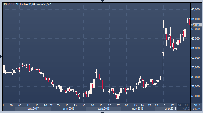 Аналитики Райффайзенбанка подсчитали, что в мае Минфин может купить на рынке валюты на 340 млрд руб. (5.4 млрд долл.). Это значительное увеличение валютных интервенций по сравнению с апрелем, на который пришлось 241 млрд руб. (4.2 млрд долл.) Такое увеличение объема покупок валюты вызвано заметным ростом цены нефти Urals (68.8 долл./барр. в апреле против 63.7 долл./барр. в марте, т.е. +8% м./м.). Минфин обнародует план покупок валюты на май 7 мая в 12:00 мск. Интервенции будут осуществляться от имени Минфина Банком России в период с 10 мая по 6 июня - т.е. 20 дней, что меньше чем обычно из-за праздников. Среднедневной объем может составить до 17 млрд руб. Интервенции являются регулярными операциями в рамках действия т. н. бюджетного правила.