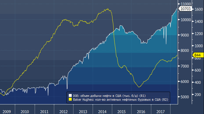 - количество активных нефтяных буровых: 844 (+10 штук);