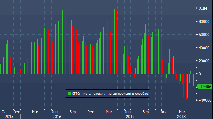 Согласно последним данным американской Комиссии по торговле товарными фьючерсами (CFTC), за неделю до 8 мая спекулянты сократили чистую короткую позицию во фьючерсах и опционах на серебро на 3 923 контракта до 19 406 контрактов.