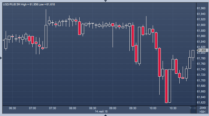 К 10:55 мск котировки пары доллар/рубль расчетами были вблизи отметки 61.73 - рубль дорожает на треть процента от уровней закрытия пятницы. Пара евро/рубль расчетами «завтра» находилась к этому времени у отметки 73,94, и здесь рубль торгуется без изменений. С прошлого четверга и по 8 июня Центробанк покупает валюту на 16.1 миллиарда в день из выделенных Минфином на этот период 322.8 миллиарда рублей из дополнительных нефтегазовых доходов бюджета. Уплата НДПИ в мае приходится на 25 мая, а налога на прибыль - 28 мая.