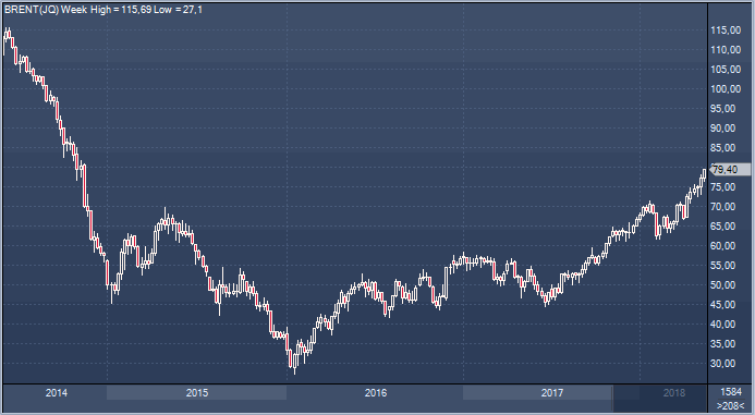 | 17.05.18 01:38 | МЭА: из-за высоких цен спрос на нефть снизится | 17.05.18 13:10 | Цена нефти пробила планку в 80 долларов за баррель |
